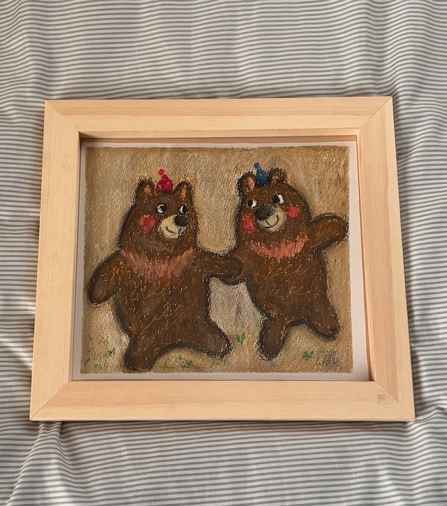 クレヨン画です。 額縁の傷などは味だと思っていただけると幸いです。 サイズは縦27.5cm横30.5です。